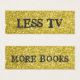 Golden glitter with text that reads: "Less Tv, More Books'