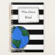 LESSON PLANNER add a NAME black and white stripe with a atlas/map of the world Designed by The Arty Apples Limited