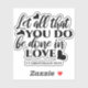 Share the powerful message of love and faith with this beautifully designed quote from 1 Corinthians 16:14: 'Let all that you do be done in love.' Perfect for anyone looking to spread positivity, kindness, and the spirit of love in their daily lives. This inspiring Christian message makes for meaningful gifts, wall art, apparel, or decor. Whether for personal reflection or as a thoughtful gift, this design encourages love in everything you do. #FaithAndLove #LoveInAction #1Corinthians1614 #ChristianScripture #Faith #Love #Bible