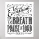 Elegant, ornate, Calligraphy typography design in elegant black letters with fancy glyphs and alternatives, hand drawn lettering and ornamental swash reads, "Let Everything That Has Breath Praise the Lord." Scripture is from Psalm 150:6.