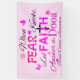 Inspirational breast cancer quote of “When FEAR Knocks, Let FAITH Answer the Door” for breast cancer fighters who have faith in God.