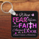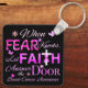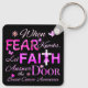 Inspirational breast cancer quote of “When FEAR Knocks, Let FAITH Answer the Door” for breast cancer fighters who have faith in God.
