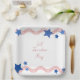 Celebrate America's Birthday with this fun and patriotic 4th of July backyard bbq party design with festive red stripes and blue stars on an ivory coloured background.
