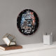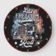 This patriotic wall clock celebrates the spirit of freedom and the open road. Against a black background with a red rim, it features a powerful blue semi-truck against a backdrop of a waving American flag and smoky trails. The inspiring text "Let Freedom Roll" embodies the essence of trucking in America. The design tool can also be used to add custom text if you want your name or company on this clock. You can customise the colour of the frame to any colour you desire by going into the design tool.