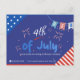 Celebrate Independence Day with this minimalist yet festive invitation card. The deep blue background sets the stage for the bold "Happy 4th of July" text in light blue and white. Minimalist illustrations of firecrackers and starbursts in red, white, and blue add a touch of fireworks flair. Hanging buntings with the letters "U", "S", and "A" and triangular sections featuring stars and stripes pay homage to the American flag. This design strikes the perfect balance between simplicity and patriotism, making it an ideal choice for your 4th of July celebration invitations.