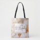 Christian tote bag depicts a beautiful floral watercolor design with white flowers and gold accents. It features a powerful Christian inspirational quote, "Let go and let God."