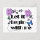 Let It Begin With Me Saying Flowers Butterfly Postcard