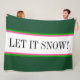 LET IT SNOW Bright White Alpine Green Stripes Fleece Blanket