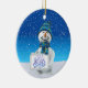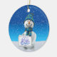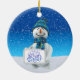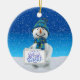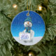 Brighten up your Christmas tree and give a touch of warmth and excitement of the holidays to your Christmas decoration with this charming circle ceramic Christmas tree ornament. Featuring a cute snowman holding a gold christmas bell on a white snowy field, bright winter blue sky and beginning of snowfall,, this charming ornament is a perfect way to commemorate the holiday season with your family and makes a great gift for all of your loved ones.