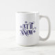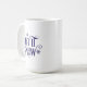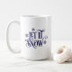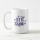 This ceramic coffee mug is shown in a festive holiday print let it snow.