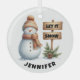 Let it Snow Cosy Winter Snowman Custom Name Glass Tree Decoration