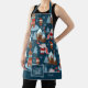 Add a cute seasonal touch to your holiday baking and cooking with this adorable custom blue and white kitchen apron. Apron has a festive brown bear ice skating, an owl wearing a Santa hat and glasses, a bird on a snowy mountain, a bunny playing a trumpet, and Christmas trees in the snow. Centre text says I don't know let it snow. Add your family last name or a first name for a personalised touch.