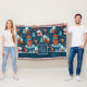 Add a cute seasonal touch to your holiday living room decor with this adorable custom blue and white sherpa blanket. Blanket has a pattern of a festive brown bear ice skating, an owl wearing a Santa hat and glasses, a bird on a snowy mountain, a bunny playing a trumpet, and Christmas trees in the snow. Centre text says I don't know let it snow. Add your family last name for a personalised touch.