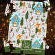Add a cute seasonal touch to your holiday game collection with this adorable custom green and white jigsaw puzzle. Puzzle has a pattern of a festive reindeer in a cosy sweater, a bird, houses, holly berries, and Christmas trees in the snow. Centre text says I don't know let it snow. Add your family last name or a first name for a personalised touch.