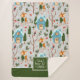 Add a cute seasonal touch to your holiday living room decor with this adorable custom green and white sherpa blanket. Blanket has a pattern of a festive reindeer in a cosy sweater, a bird, houses, holly berries, and Christmas trees in the snow. Centre text says I don't know let it snow. Add your family last name for a personalised touch.