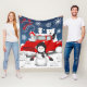 This design features the nostalgia of a vintage red truck with some Arctic animals and a snowman in a wintry scene.