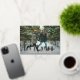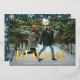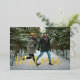 Festive holiday photo card features your favourite horizontal or landscape orientated photo in full bleed, with "let it snow" overlaid in gold foil hand lettered brush typography. Personalise the front of the card with your names and short holiday message.