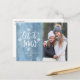 Wish your friends and family a happy holiday with our Let It Snow holiday photo postcard. The festive holiday postcard features Let It Snow in a hand-lettered script surrounded by snowflakes against a winter blue watercolor background. Personalise the front of the card by adding your name, the current year, and your favourite photo. The reverse side displays your return address and custom message.