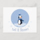 A penguin wearing a blue hat and scarf stands in the snow and watches the snowflakes fall. This design is available on multiple products including shirts, mugs, pillows, and more! It can be customised or personalised by adding your own text or images!