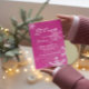 This trendy and modern Christmas party invitation features a soft, pastel pink background adorned with delicate white snowflakes. The intricate snowflakes, with their fine, lace-like details, create a frosty and festive atmosphere, adding a touch of elegance and whimsy to the design. The words “Let it Snow” are beautifully written in a bold, playful font at the top, setting the tone for a fun and cosy celebration.