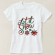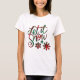 This is a fun Christmas T-shirt featuring the phrase "Let it snow" and three snowflakes in a plaid pattern.