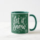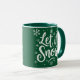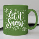 Elegant script Christmas coffee mug. The design features the text "Let It Snow" in white typography with white star and swirl accent elements. Makes for the best personalised gift for yourself, your friends, family members and even neighbours. We have 35+ more Christmas coffee mugs in our collection that you will definitely love. Please check it out and get the best Christmas gift with special wishes for your special people. Merry Christmas!