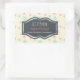 A festive sticker which says: let it Snow, Seasons Greetings, with your custom name. The background is a pattern with pink and blue snowflakes on a cream coloured background. The centre has a whimsical hand drawn banner, inside you can personalise the text.