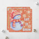 Let It Snow Snowman Holiday Flat Card. White Glitter Look Snowflakes and a Snowman with Metallic Pink and Glitter Gold Background. Photo and Text Editable.