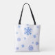 Let it Snow Snowman with Snowflakes Tote Bag - A two sided rugged tote with a message of Let it Snow and a snowman on one side and falling snowflakes on the other. It's a lovely two sided bag great for gift giving and can also be used as the reusable gift bag to tote some gifts to your friends. It's also a great bag for a purse, reusable grocery bag or a carry all to keep with you.
