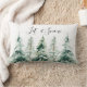 Let it Snow Watercolor Christmas Pine Trees Lumbar Cushion