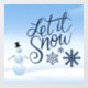 Decorate your Christmas home or business with this winter wonderland with a snowman window cling. This holiday window cling features a snow background with a snowman with a blue glitter-like text overlay "let it snow" with snowflakes.