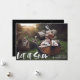 Let it Snow modern brush white script, holiday photo card. Back of card features snow overlay on solid black colour.