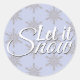 This Let it Snow Winter Snowflake Sticker is a festive party favour or envelope sealer. Grey snowflake pattern on a periwinkle background with the phrase 'Let it Snow' in a white cursive script. Let this stylish add some holiday cheer.