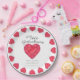 Ruby gemstone heart watercolor art wedding paper plates, ideal for a ruby red or gemstone themed wedding. Personalise with your own names and wedding details. Other matching items are also available. © Original watercolor hand painting art and design by Sarah Trett for www.mylittleedenweddings.com