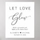 Chic wedding reception dance floor sign featuring "Let Love Glow" in a mix of simple modern typography and a stylish script, your first names joined together with a heart and your reception date. You can easily personalise your glow stick instructions.