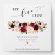 Let your guests bring something home to remind them of your special day. This design features a vibrant watercolor marsala and pink floral arrangement with an elegant calligraphy script of 'love" and heart. You can personalised with a short message, the names of the bride and groom, wedding date. You place a seed packet inside the envelope but you will need to buy those seeds separately. Please note: "Let Love Grow" wording artwork and the vibrant watercolor marsala and pink floral arrangement cannot be edited, changed, moved, or deleted.