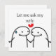 The image humorously depicts two characters holding hands, with one of them saying, “Let me ask my wife.” This playful illustration highlights the dynamics of decision-making within relationships. A imagem mostra de forma divertida dois personagens de mãos dadas, com um deles dizendo: “Deixe-me perguntar à minha esposa”. Essa ilustração brincalhona destaca a dinâmica de tomada de decisões nos relacionamentos.