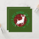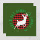 A white stag for the Christmas Holiday on a buffalo plaid circle with the words “Let’s get ready to jingle”.
