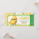 Styled like an “Admit One” ticket, this horizontal layout adds an exciting twist your guests won’t forget. It’s perfect for fruit-themed parties, tropical birthday bashes, or little ones who love silly characters and bold colours.