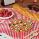 Bold and creative! Green and purple apples on a bright orange background create a lively and unique design. The Let’s Party Started collection turns paper plates and cups into the stars of the party, perfect for birthdays, outdoor picnics, and fun get-togethers.