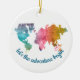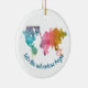 "Let’s the Adventure Begin" Geometric World Map Ceramic Ornament