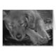 This detailed black and white portrait photography captures a content puppy dog as she sleeps comfortably. She is a rescue mutt of unknown heritage, but strongly resembles the golden retriever breed.