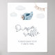 Celebrate the mum-to-be with this blue and tan vintage travel themed baby shower diaper raffle sign featuring a watercolor illustration of a cute aeroplane with clouds.