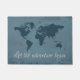 Let the adventure begin text design with world map decoration on grunge, blue background