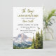 Our adorable "Let The Adventure Begin Mountain Forest Boy" baby shower invitation features a watercolor mountain range with a pine forest in the foreground. The sky is a light blue and three birds are flying overhead. The design is realistic in style and has a soft, dreamy feel.