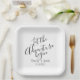 Modern script Let the adventure begin custom personalised add your names and date simple, modern, elegant handwritten font wedding paper plates.