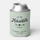 Give a wedding toast and a fun souvenir keepsake gift to your wedding guests with this custom sage green can cooler featuring "Let The Adventure Begin" written in a mix of simple typography and a retro script, a heart with an arrow, and your names and wedding date.