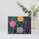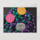 a fun closeup of mardi gras beads and coins (doubloons ) of purple,green,red,silver and gold on a black background. the back of the card has You're Invited in party purple letters.