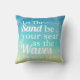 This pillow says summer! From the ombre background in pretty shades of blue, teal and green. To the text that says Let the sand be your seat as the waves hit your feet. An outline sketch of starfish border the pillow and add interesting texture. This pillow is great for beach houses or home decor with an ocean coastal theme.