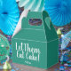 Let Them Eat Cake - Take Home Boxes. This one is teal with a whimsical white script